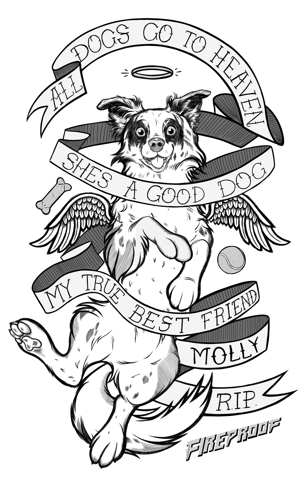 Molly was my best good friend, she was a border collie and they are the Rocket Scientist of the dog world. Molly was no different, she was loyal, always happy and she would likely put her paw in your hand. I learned compassion and how to be a good human from her. She not like my other characters I draw, in fact you’ll probably not see her in my artwork. But I like to draw in-memorials of her. You might see one of her dog treats thou. R.I.P.